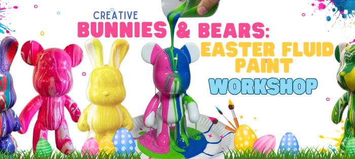 We’ll guide you step-by-step as you pour, swirl, and play with vibrant acrylic paints to create a truly mesmerizing 3D Fluid Bear or Bunny masterpiece.