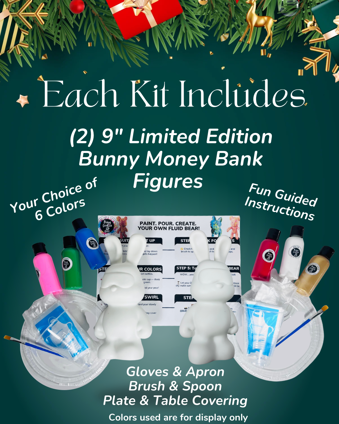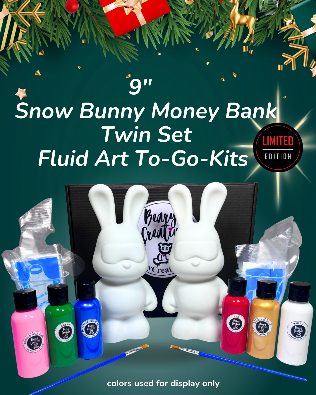 Limited Edition 9” Snow Bunny Money Bank Twin Set — Fluid Art To-Go Kit