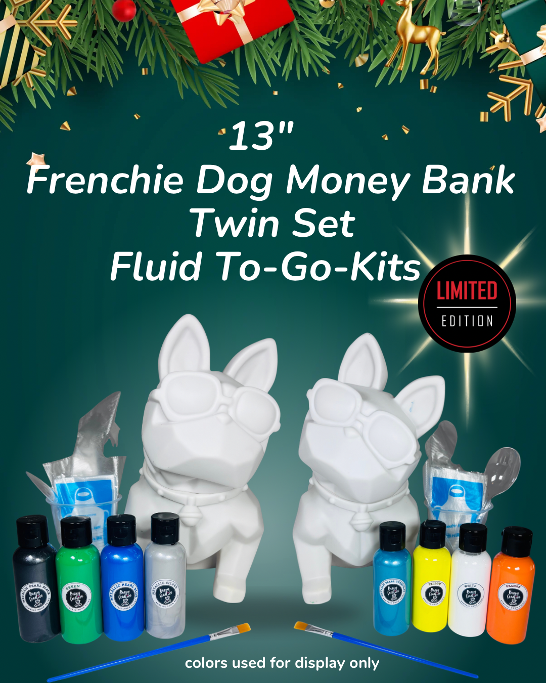 13-Inch Frenchie Dog Money Bank — Twin Set Fluid Art To-Go Kit 🐶🐶💸🎨