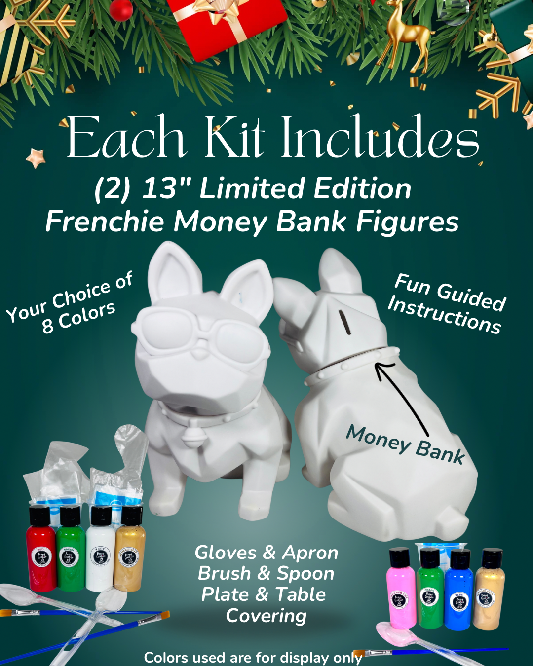 Create two colorful pups, make memories, and enjoy the cutest matching money banks ever. The Frenchie Twins are waiting!