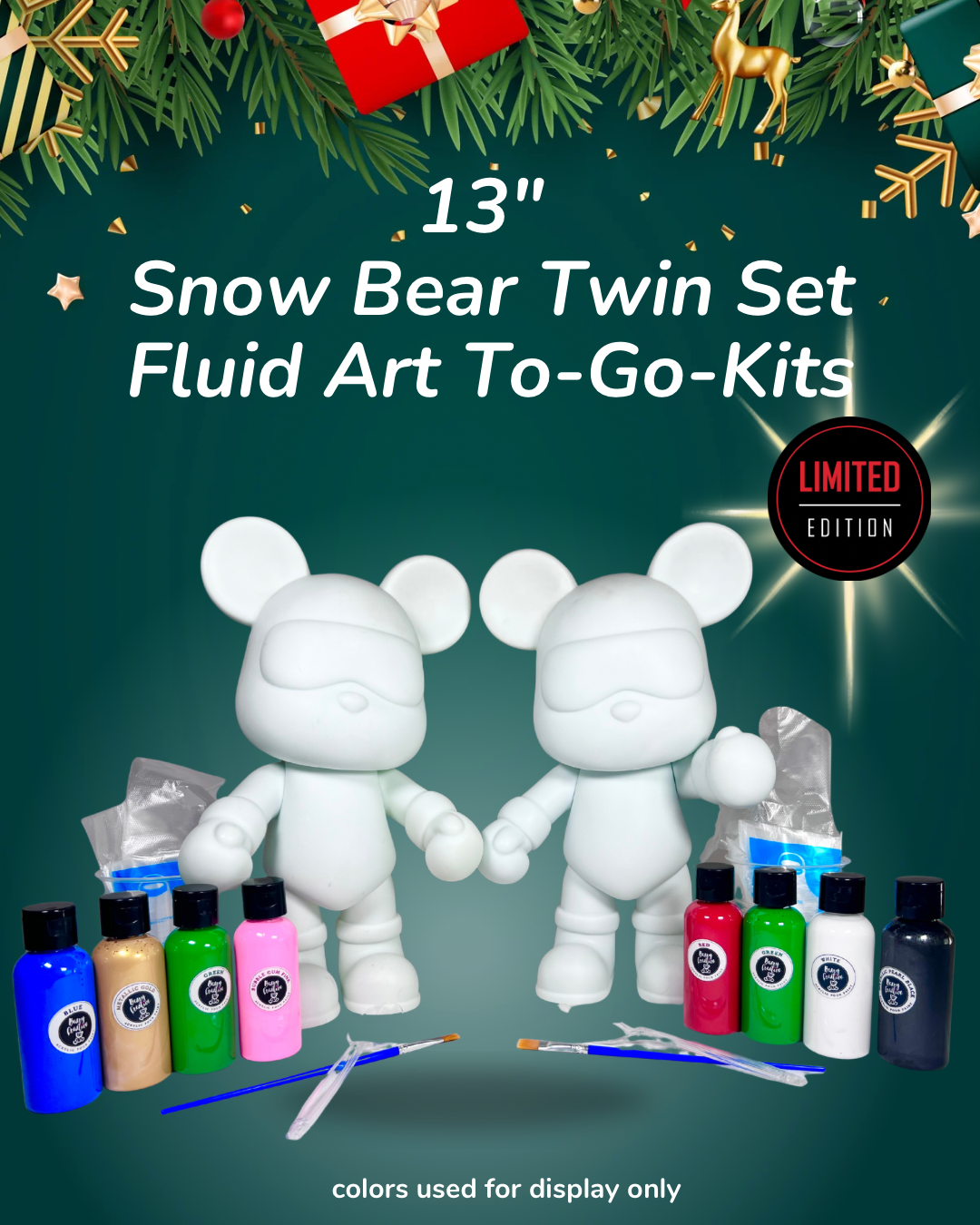 Meet the Snow Bear Twins — a pair of adorable 13-inch winter bears that are ready to be transformed into stunning, snowy masterpieces! Bigger, bolder, and extra fun to paint, these large Snow Bears give you the perfect canvas to swirl your colors, mix your magic, and create two truly unique works of high quality art!